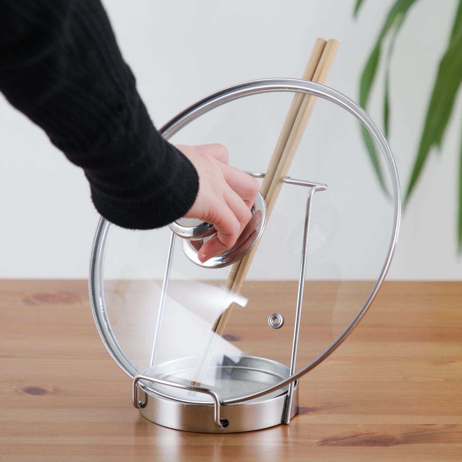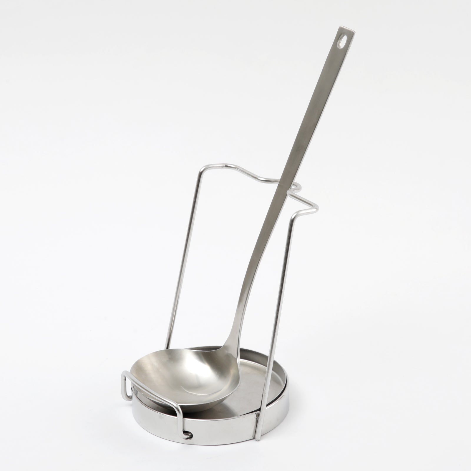 調理中のちょい置きに。便利なツールスタンド「ステンディ」調理中にお玉や菜ばしやお鍋のふたが置ける、ちょい置きスタンド。調理中のちょい置きに便利。お玉以外の小物(菜箸・ターナー・ヘラ・トング・しゃもじなど)や鍋蓋・フライパンカバーなどを立てることができます。