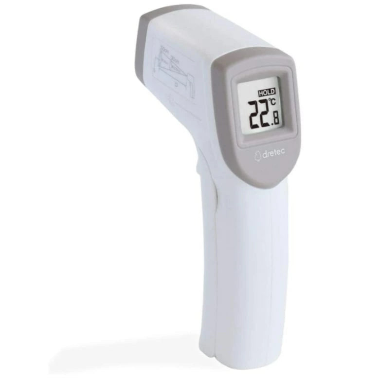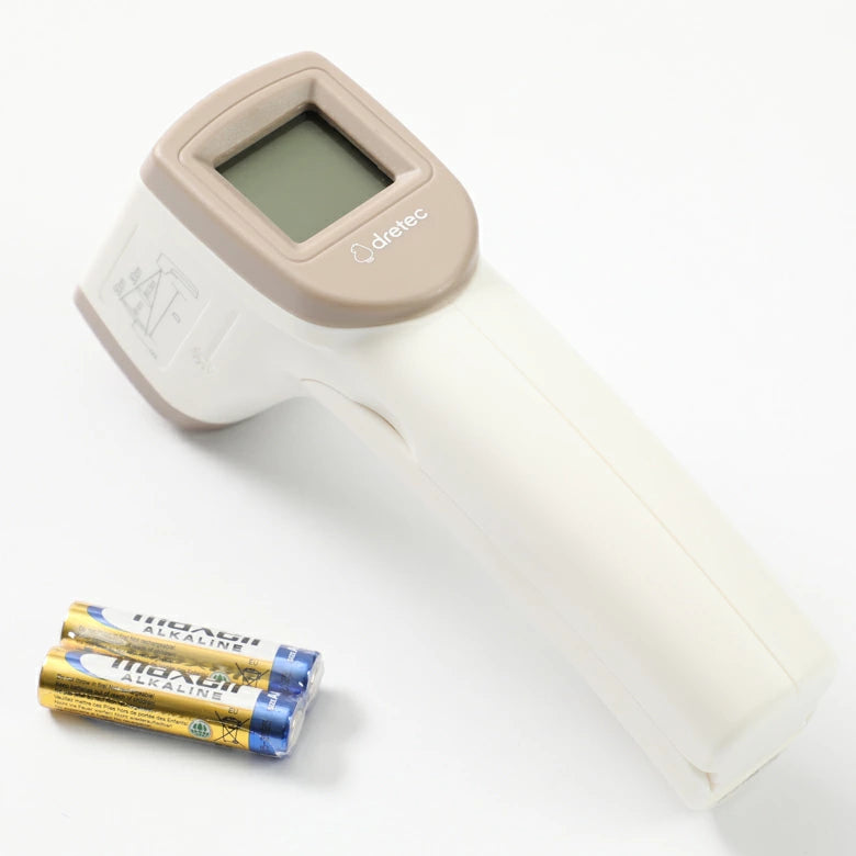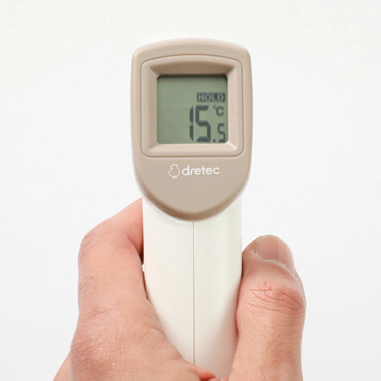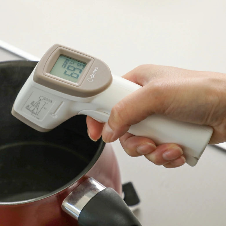 直接、対象物に触れることなく温度をチェックできる放射温度計です。油はねや蒸気に直接手が当たりにくいので安心してお使いいただけます。