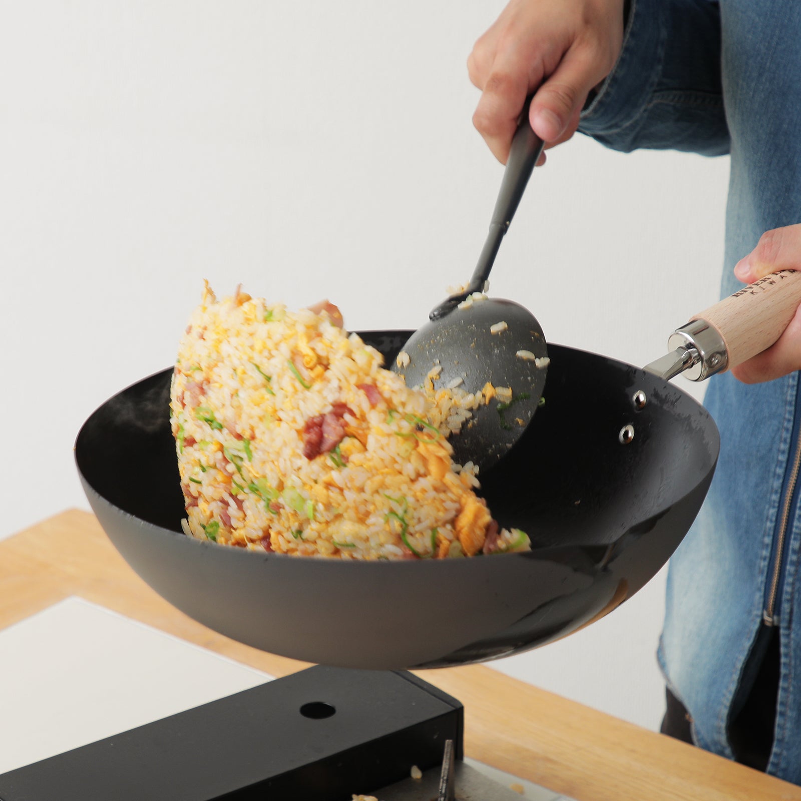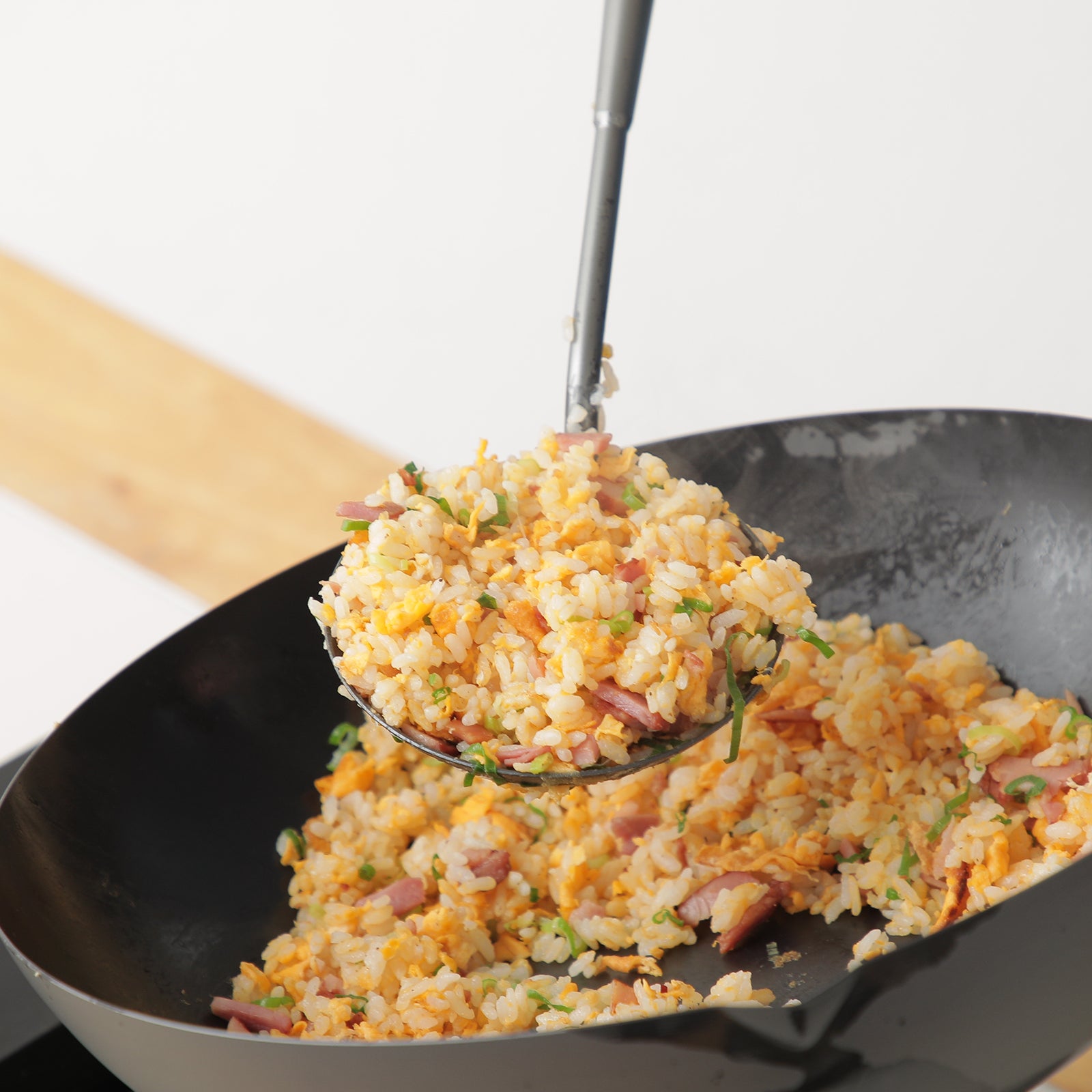 鉄の利点を生かしながら、サビやすいという欠点をほぼ完璧に打ち消した鉄フライパン。強い火力で調理ができるので、美味しい炒め物を作ることができます。野菜はシャキシャキでチャーハンもパラパラにできるおすすめの鉄鍋(ウォックパン)です。