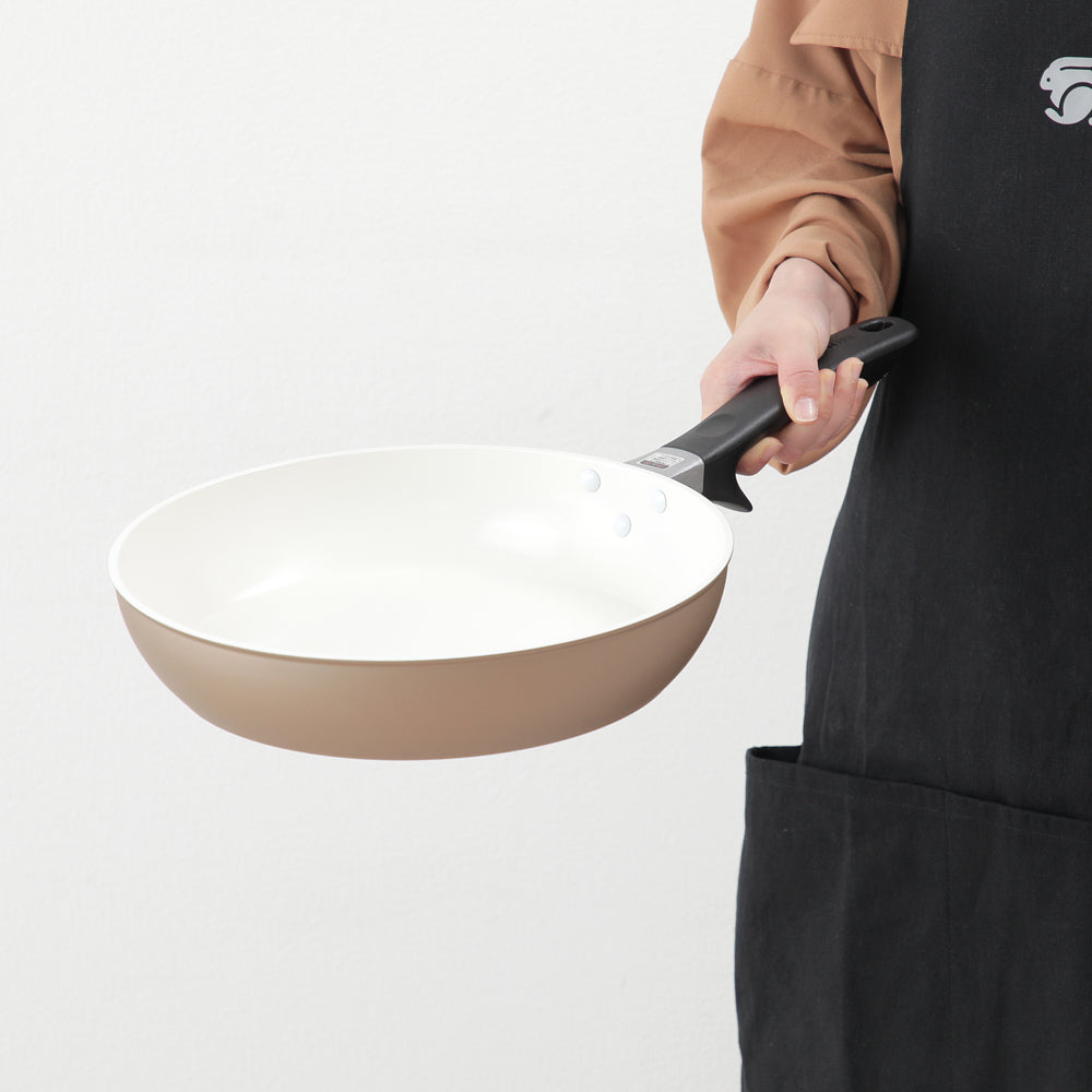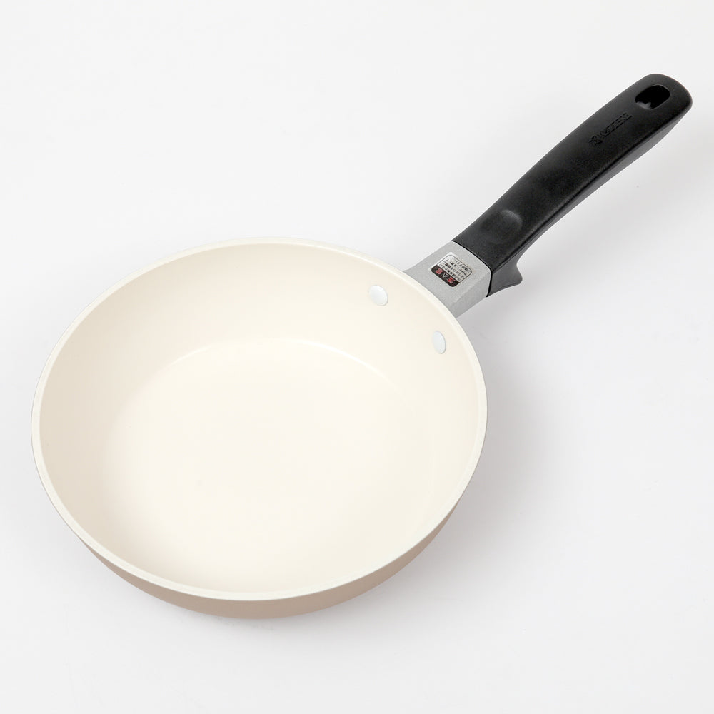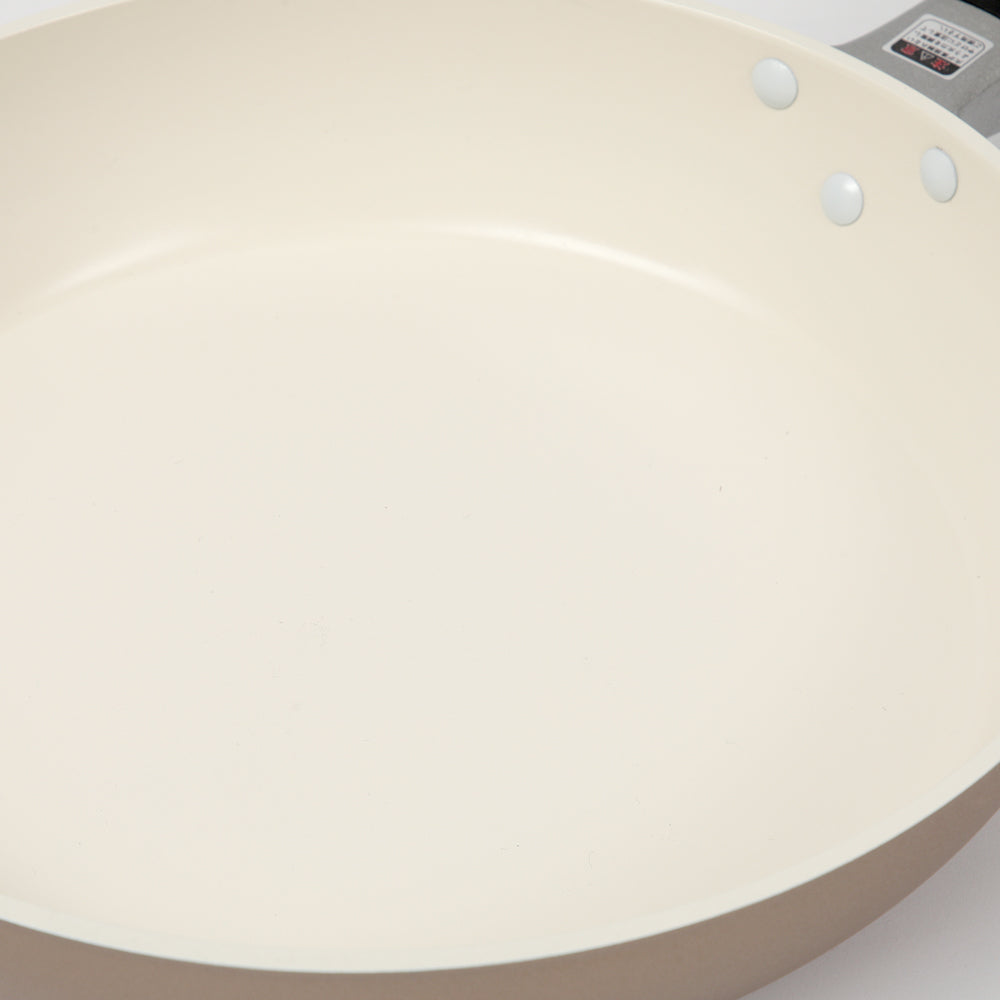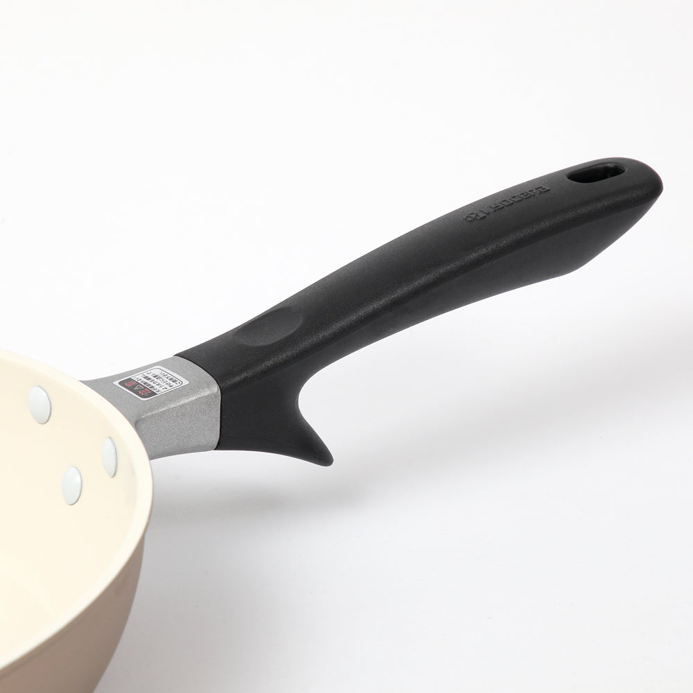 材質:本体 / アルミニウム合金(内面/セラミック塗膜加工、外面/耐熱塗装)、底面 / ステンレス鋼、ハンドル / アルミニウム合金、フェノール樹脂