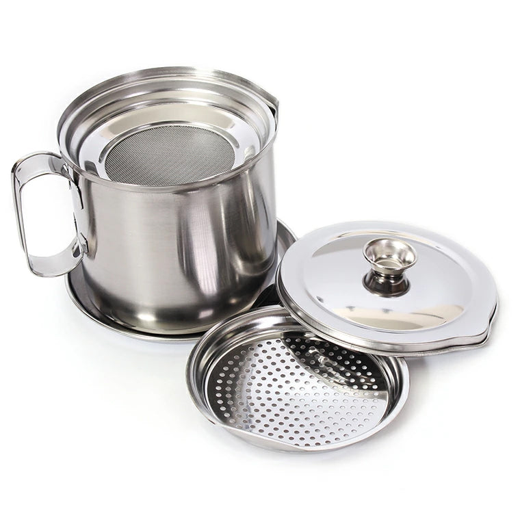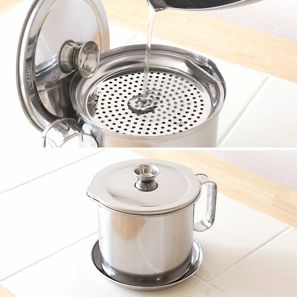 【日本製】ステンレス製 オイルポット 受け皿付きセット