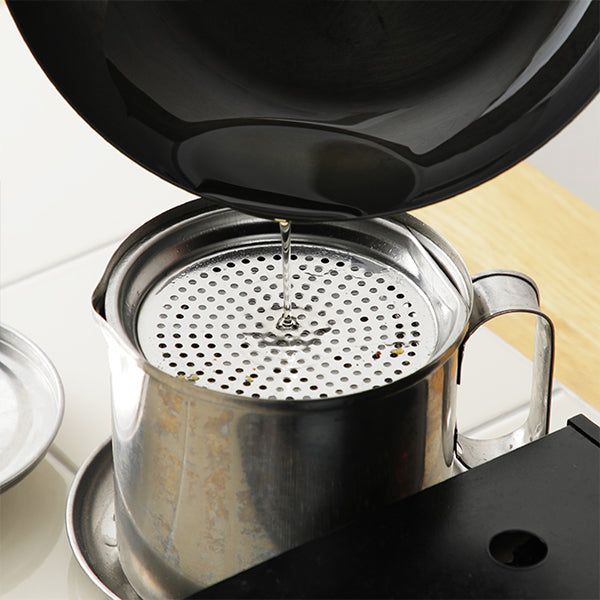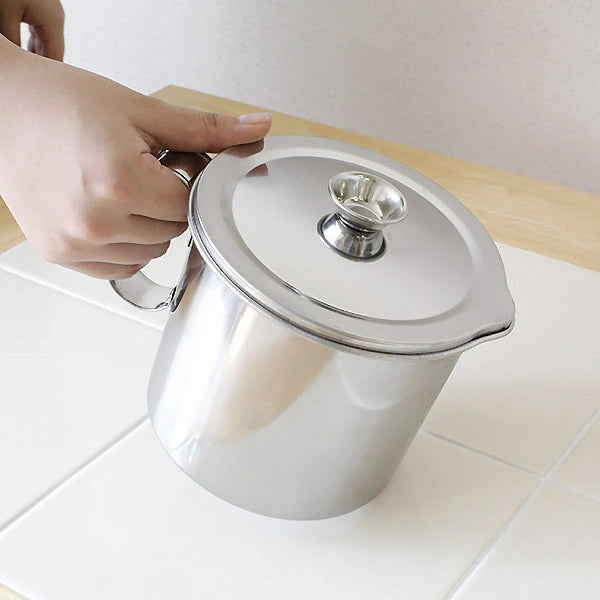活性炭フィルターや、表面にコーティング等がされていないため熱々の油もそのまま入れることができます。(※温度の高い油を入れますとポット自体も熱くなりますのでご注意ください。)