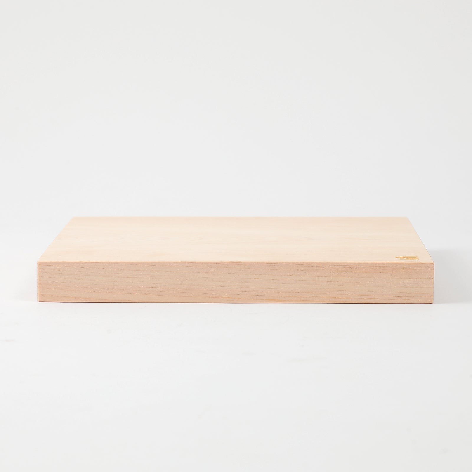 鐵兎堂-TETTODO-が地元京都の職人に依頼して作ってもらった、「ちょうどいいサイズ」のまな板です。しっかり厚みがあるから自立してくれるので乾かす場所もとりにくく、この大きさだからこそ水切りカゴにも入れることができます。