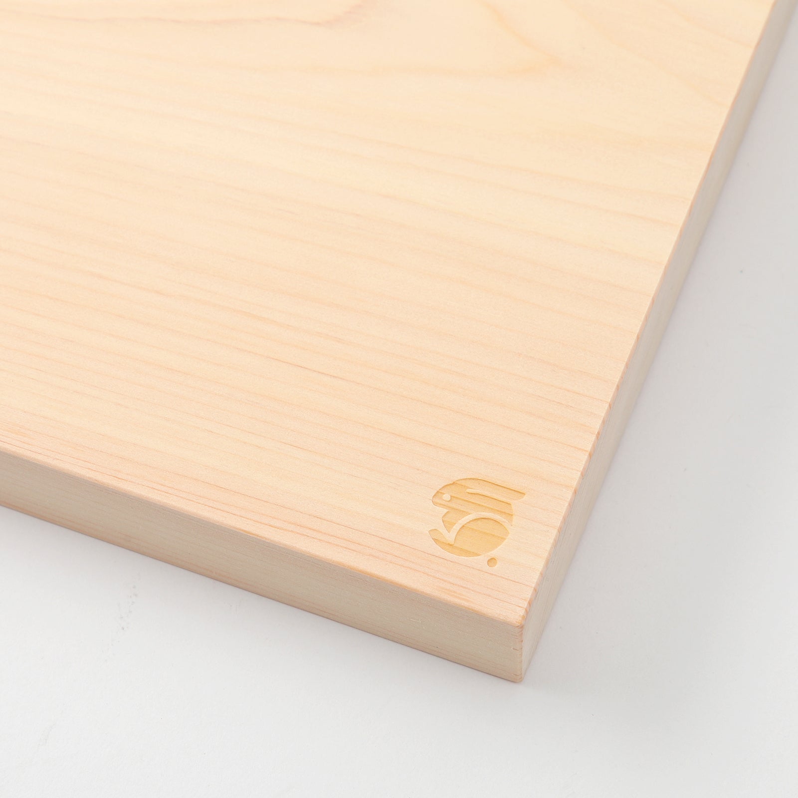 昔ながらのしっかりとした厚みのまな板です。厚さは2.5cmあり存在感がありますがそれがいいところ。ペラペラなシートタイプのまな板が苦手な方には喜ばれます。分厚くてもヒノキはとても軽くて軽量で扱いやすいです。素材の産地である京都北部は全国でも屈指の林業地として知られています。夏暑く冬寒い、寒暖差の大きい京都のヒノキは程よい柔らかさと粘りがあり、まな板に最適な状態になるそうです。しかし京都の林業は杉がメインで檜は数が少なく安定供給が難しいため、質がいいにも関わらずほとんど流通しません。そんな貴重な木材をわけていただき、京都の家具職人に加工していただきました。
