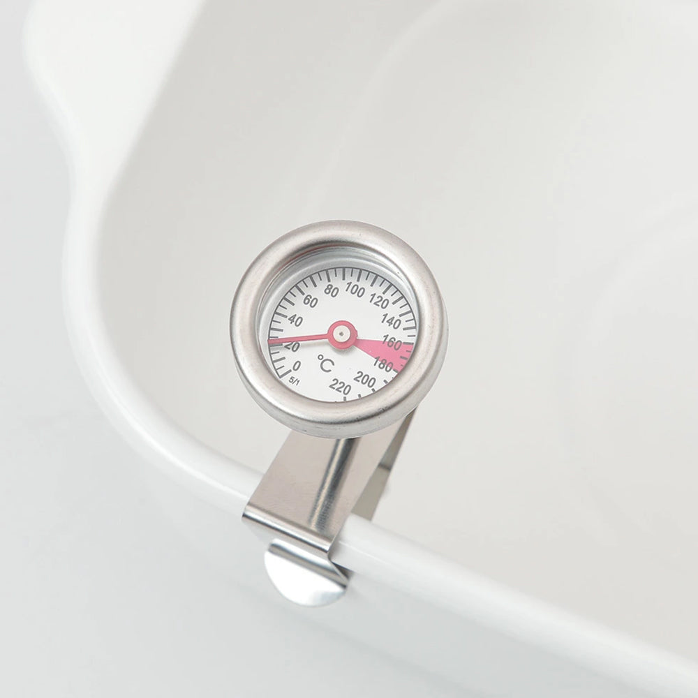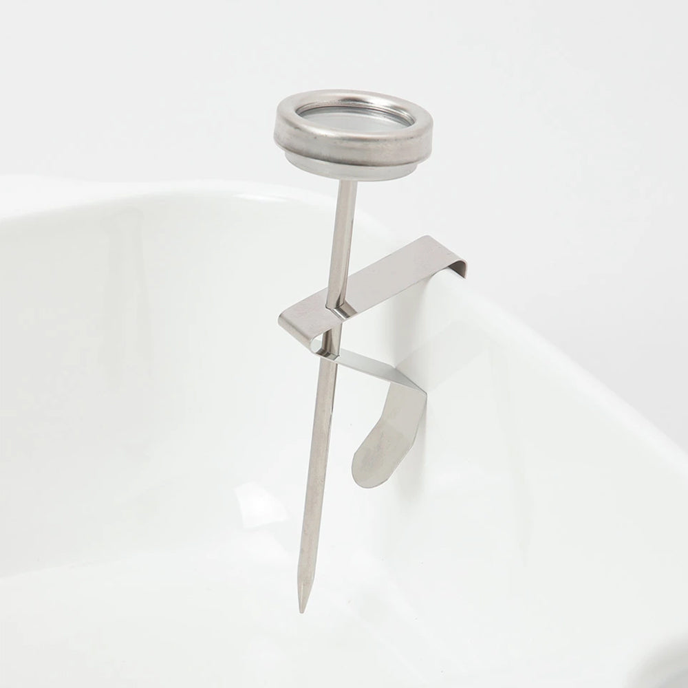付属の温度計は 防水型で丸洗いOK。適温をいつもぴったり管理できます。