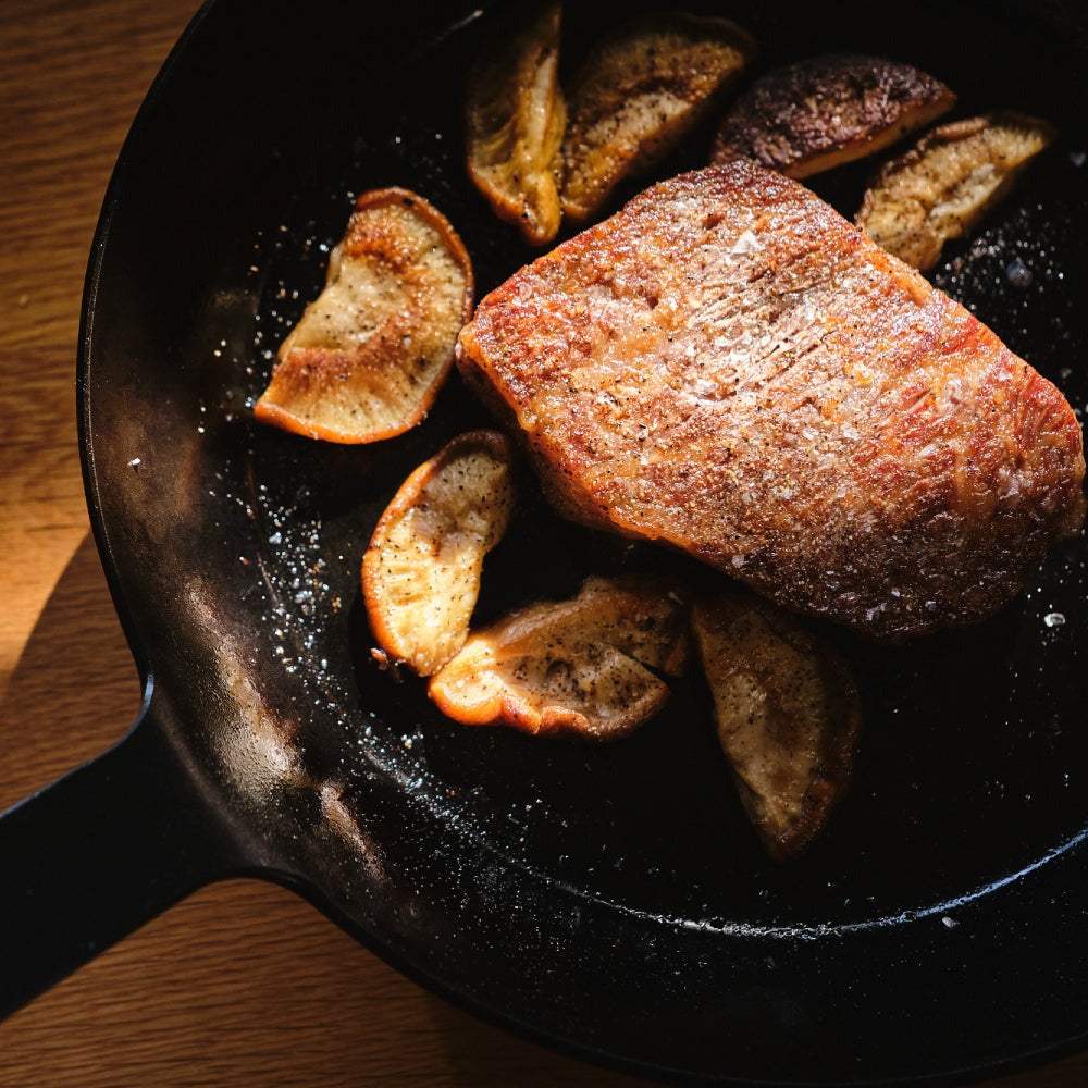 一枚の鉄から一体成形ですのでお手入れのしやすさはもちろん、キッシュやパイを焼く時もリベットの跡がつくことはなく美しい仕上がりに。見た目にもスタイリッシュで極限の無駄のないスタイルです。